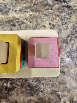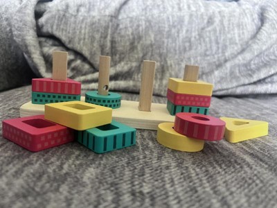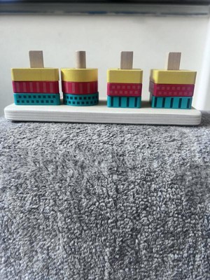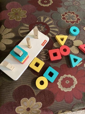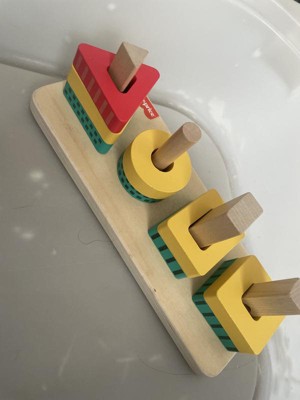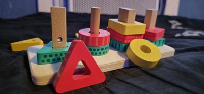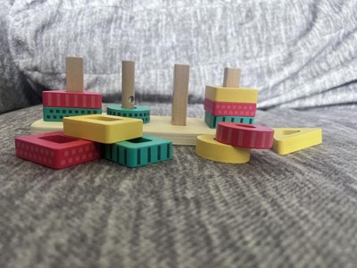 [This review was collected as part of a promotion.] All three of my children enjoy playing with the different shapes and stacking them. Not only did they stack them on the given base but they also got creative and built “towers” and other structures using their imaginations. Warning - my 5 year old’s finger fits perfectly in the holes of the shapes and it got stuck, so make sure to monitor your kids’ playing with this. It’s a very simple but fun toy, many colors and shapes. Great tool for learning!