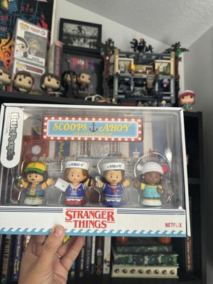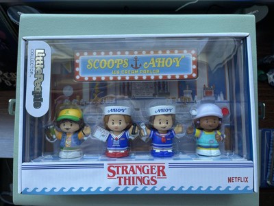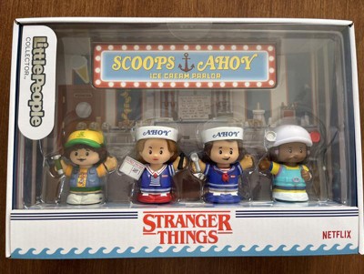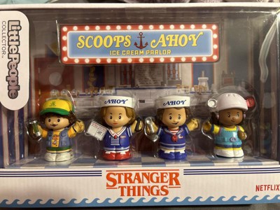 [This review was collected as part of a promotion.] This is a very cute Stranger Things collectors toy. It includes 4 characters from the show. The characters outfits are very detailed and the colors are nice and bright. I love that each one is holding an accessory that represents something they did in the show. The packaging is so adorable. It even includes an image of the Scoops Ahoy Ice Cream Parlor in the background. The Little People are very sturdy and well made. Great toy for fans of the show!