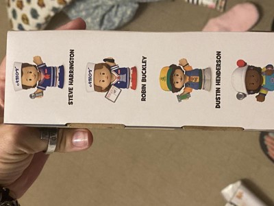 - Includes 4 characters from the show: Steve Harrington, Robin Buckley, Dustin Henderson, and Erica Sinclair