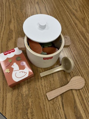 [This review was collected as part of a promotion.] Our five-year-old granddaughter absolutely loves this wooden soup pot! She has a pretend kitchen and has been making us her “soup” since she received it. Fisher price has really hit the nail on the head with these wooden products that they have out. It’s beautifully made and should last forever!