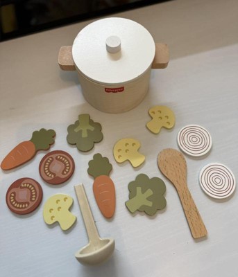 [This review was collected as part of a promotion.] Our children really enjoyed playing with the Fisher-Price® Tiny Garden Wooden Soup Set. We love that it’s made of wood and includes several food items. It would be nice to have a few bowls, as it came with a spoon.