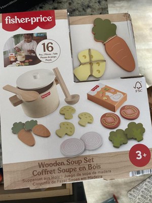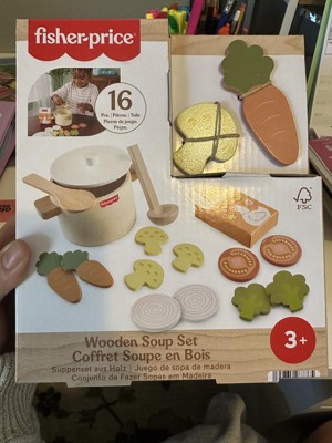 Fisher-Price Tiny Garden Wooden Veggie Soup Pretend Kitchen Play Set for Kids 16pc Wooden