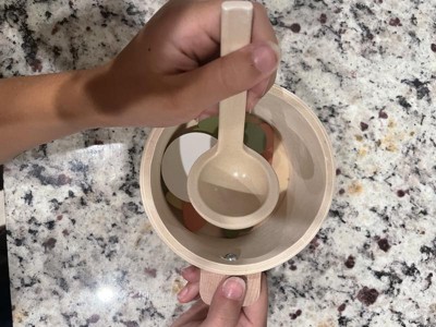 [This review was collected as part of a promotion.] I am thrilled with this wooden soup set! The quality is top notch! I love that it is intended for open ended play. My little one has made us soup but also has made it into salad and even used it for tea time. She loves it! The size is perfect for little hands. If you have a child age 3 and I up I would highly recommend this sweet soup set.