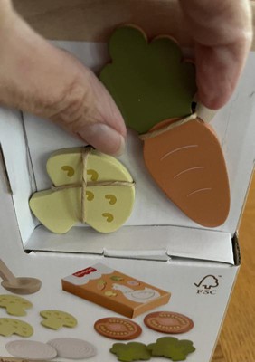 [This review was collected as part of a promotion.] Absolutely precious! This set is so cute and the details are perfection. This was perfect for my daughter’s play kitchen. I love that the set is wooden so I don’t have to worry about them getting ripped up (like paper sets) or crushed (like plastic sets). My daughter has had so much fun “making soup” for the whole family!
