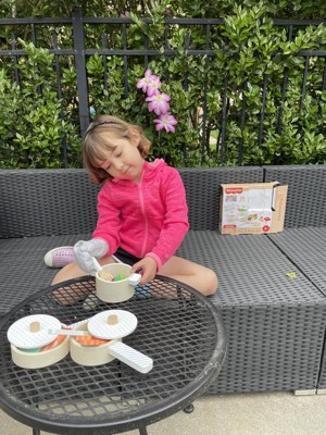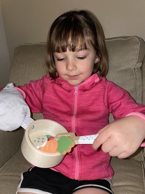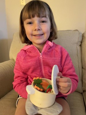 [This review was collected as part of a promotion.] This was a great toy for my toddler who is starting to become picky with eating. She knows all the foods and vegetables and has started to “feed” them to her stuffed animals. I’ve noticed she enjoys playing with the pans and pretending to cook. This toy is great for engaging little ones with the idea of eating healthy meals