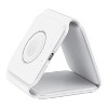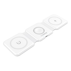 Recharge up to 3 of your digital devices and accessories with ease using this 3-in-1 Foldable Wireless Charger from FISHER® Tech Essentials. This charger works with Apple® devices and Android™ phones that are wireless charging compatible. The portable folding design provides for easy carrying and storage, ideal for travel or daily use. 15-watt fast charging gets your devices charged quickly and efficiently.