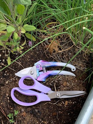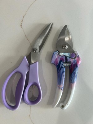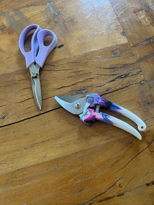 [This review was collected as part of a promotion.] First, I loved that these came in the cute spring purple! The kitchen shears work great and are a go to for meal prep. The pruner is perfect for my overgrown vines in the backyard, just in time for spring cleaning. They are sturdy and seem to be durable so far.