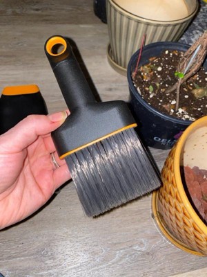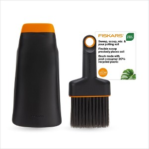 The Fiskars Planting Scoop and Brush Set makes neat and precise work of re-potting, planting and tidying up when caring for houseplants or small-space gardening. The dual-sided scoop has a narrow, rigid end that digs into soil and a wide, flexible end for transferring soil and for collecting swept up materials. The durable brush handle is made with 20% post-consumer recycled plastic, and its long, soft bristles quickly sweep up potting mix. The brush securely nests into the scoop and has a hang hole for easy storage. Caring for plants is one of life's simple joys, bringing us closer to nature and cultivating our own wellbeing. Whether growing fresh food on a city balcony or adding live decor to your living room, every Fiskars Indoor and More tool is specially designed to help transform your patio, balcony or home into a lush, green oasis.