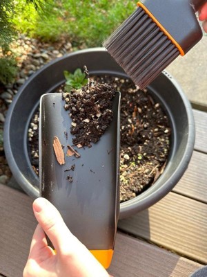 [This review was collected as part of a promotion.] This little Fiskars soil scoop and brush are perfect for repotting in a small space! The raised sides on the scoop help prevent spilling which is important for indoor growing, no mess! The brush helps clean up and excess soil that might have spilled back into the pot. It has a sleek and minimalist design that is appealing to the eye. Love it!