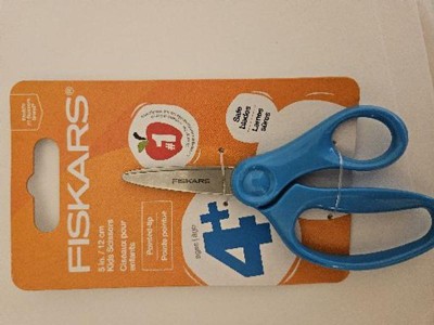 - 5-inch scissors feature a fun blue handle designed just for kids ages four to seven