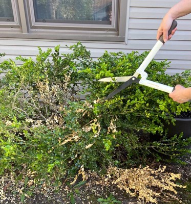 [This review was collected as part of a promotion.] The Fiskars White PowerLever Hedge Shears from the Light & Bright Series are great! They are very lightweight — perfect for extended trimming sessions without arm fatigue. The blades are sharp so they easily cut through the thick and thin branches of the bush I am tearing out of my front yard. The bright white color makes it easy to spot in the yard when I set them down. The handles are comfortable to hold, with just the right amount of grip. I also like how easy they are to clean after use — dirt wipes right off the smooth surfaces.