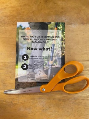 [This review was collected as part of a promotion.] Fiskars is such a reliable and quality brand. These scissors are sturdy, sharp and easy to clean. I use them for crafts, in my kitchen and for general household purposes. I know they will last a long time.