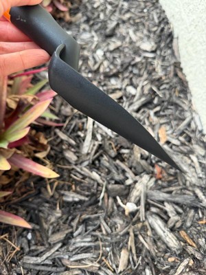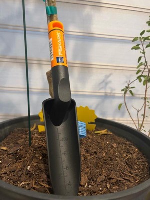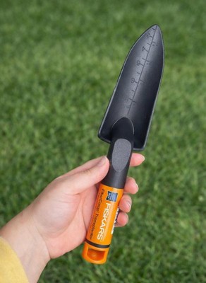 Designed for easy use and lasting durability, Fiskars® Ergo Transplanter features a special handle design that reduces hand and wrist fatigue, plus gradation marks on the blade for easy depth measurement. The cast-aluminum head resists rust and won't snap off while you're digging, no matter how tough your soil is. Additionally, the handle features a hang hole for convenient storage.