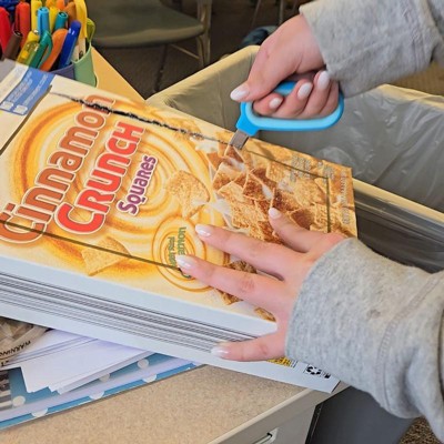 safer than a utility knife. The micro-fine serrated blade makes cutting cardboard easy for small hands.