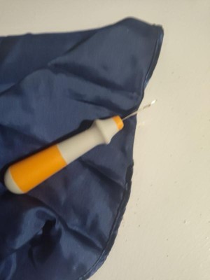 [This review was collected as part of a promotion.] I was excited to get a seam ripper to review. It's silly sounding, but a good seam ripper design makes a difference. I used the seam ripper on several different tasks to compare to my others. I removed the embroidery and ripped open a seam with my already-owned ones and this new one. First off. I love that it has a cover. I wish it screwed or clicked on but the fit is pretty secure and the top did not shake off. The handle is the best part. The handle is the most comfortable of any seam ripper I have used. At first, I wanted it to become my new go-to. Unfortunately, the actual seam ripper did not perform well. I tried to take photos so others could see but the images don't show the blade well. The blade is too thick. It doesn't slide into the seam well. The blade is too bulbous. It is wider and fatter than my preferred seam ripper. I would suggest this as a good choice for a vacuum hair-cutting seam ripper because of the ergonomics, but not for delicate projects.