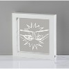 Feel the power with this abstract Fist Bump Video Light Box by Simplee Adesso, which can be wall mounted as eye-catching wall art or can stand free on tables, shelves, nightstands, or counters. Measuring 9" tall by 9.25" wide including a white plastic frame, this light box includes a 7.25" square window with art illuminated in white LED light. The light can be easily turned on or off with a push button switch. The 0.3W LED can be powered by either 3 "AA" batteries (not included) for a clean, wire-free aesthetic. Alternatively, the light box can be powered using the included 8' USB cable for unlimited use without needing to worry about replacing batteries.
