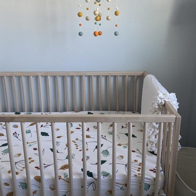 This Fitted Crib Sheet from cloud island™ fits standard crib and toddler beds. Made from 100% cotton, this standard crib sheet fits a six-inch mattress, and it's designed with an all-around elastic for securing over the corners of their crib mattress. Adorned with an allover plant of colorful foliage on a white background, this printed fitted crib sheet brings a touch of nature-inspired charm to your baby's nursery decor.
