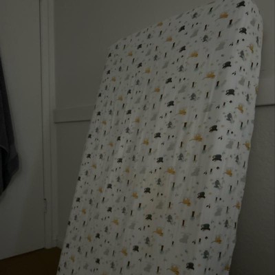 Cute fitted sheet. First snug on the baby mattress so I don’t worry when my baby sleeps on her stomach. Washed a handful of times and no issues. Could be softer otherwise okay.