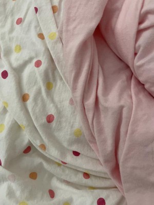 - Includes 1 soft pink sheet and 1 with a multicolor polka-dot pattern