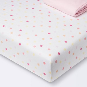 Fitted Jersey Crib Sheet 2pk - Cloud Island™ Multi Dot and Solid Pink