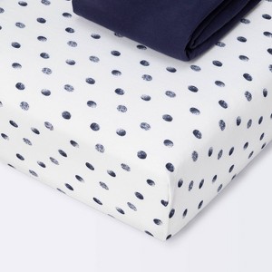 Fitted Jersey Crib Sheet Dots and Solid Navy Blue - Cloud Island™ - Navy - 2pk