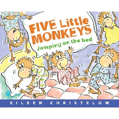 Five little monkeys jumping on the bed.One fell off and bumped his head.The mama called the doctor. The doctor said, "No more monkeys jumping on the bed!" Their teeth are brushed, their pajamas are on, and as soon as they say good night to Mama, the five little monkeys start to jump on their bed! But trouble awaits as, one by one, they fall off and bump their heads! The uproarious rhyme is brought to life in this family favorite. With its mischievous illustrations and surprising twist, this contemporary classic is a sturdy and beautiful book to give as a gift or add to a home library.