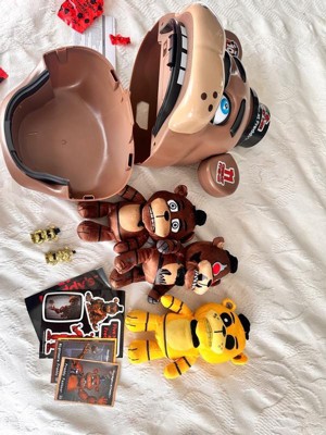 [This review was collected as part of a promotion.] My kids have been Five Nights at Freddy fans for a long time. They are teenagers now but we're excited when I received this bundle. All of the smaller prizes were held inside the larger bear head. There were several smaller stuffed animals, some stickers and trading cards. This would be a fun gift set for any Five Nights at Freddy's fans!
