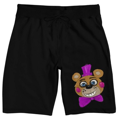Get ready for comfy nights with these Five Nights at Freddy's sleep pants. The pants feature a black and white image of Freddy Fazbear's face with a pair of bones crossed underneath him. Sideways white letters below the image spell out the survival game's title. The pants come in black with a pair of pockets and an elastic waistband. Fans of the Freddy games will love this fun design.