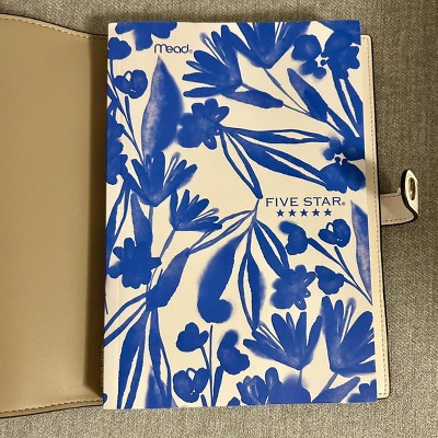 LASTS ALL YEAR. GUARANTEED!* This Five Star Journal features a Soft Petals design with blue hand-drawn florals. It has 150 double-sided, ruled sheets of high-quality paper, which have space at the top for a date and title. The ruled sheets are securely sewn in and the durable hardbound cover helps protect notes all year long. Smooth wireless sewn binding won’t snag on your clothing or backpack. 5 1/2" x 8 1/2" sheet size. *Guarantee is valid for one year from purchase or delivery date, whichever is longer. Does not cover misuse.