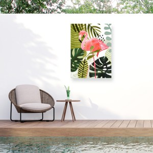 This ready to hang, gallery-wrapped art piece features a flamingo standing in the center of a green scene.Prominent Colors: White, Green, Black, Tan, Grey, PinkWorld Art Group is a leading art publisher located in Richmond, Virginia. We have been producing wall decor for over 40 years. Formerly known as Old World Prints, World Art Group publishes a comprehensive line of imagery ranging from very Traditional to highly Contemporary. With weekly releases, covering every subject matter and every price range, we produce over 4,000 images a year. In addition to collaborating with artists from around the world, World Art Group has its own in-house design team Vision Studio.The Outdoor Canvas Art by Trademark Fine Art is a great way to add a pop of color to your poolside, balcony, backyard, garden, or porch. This all-weather outdoor decor is printed with UV gel inks to prevent fading for years to come. These colorful outdoor pictures for the patio have been digitally reproduced, printed on all-weather artist canvas, stretched, and gallery wrapped on all-season stretcher bars for a clean finish.