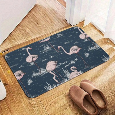 Flamingo With Flowers Bathroom Rugs Winter Bath Mat Absorbent Non Slip Bathroom Mat Christmas Soft Floor Carpet 16x20 Inches - 1 of 1
