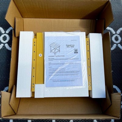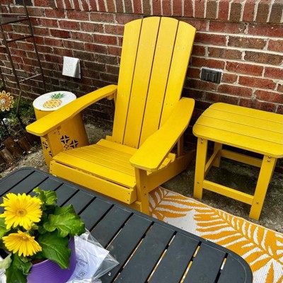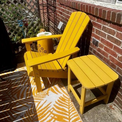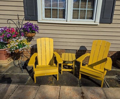 [This review was collected as part of a promotion.] This set of two Adirondack chairs and table by Flash Furniture is so nice! I LOVE the yellow color (my favorite ☀️) The chairs are incredibly comfortable and have nice wide arm rests that provide ample room for your beverage, snack, or phone. The matching table is just the right height and size. I was really impressed with how everything was packaged nice and secure and arrived in perfect condition. It only took about 5 minutes to assemble the table and 10-15 for each chair. The instructions provided are clear and everything was labeled for easy assembly. This furniture is replacing some aging plastic Adirondack chairs and I couldn’t be happier with the new set! I can tell that the material is very sturdy and should last for many years to come.