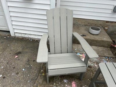 [This review was collected as part of a promotion.] I received this free for an honest review. The Flash Sale Charlestown Ploy Resin Wood Adirondack Chairs and Side Table are a perfect way to furnish your backyard. With min-moderate experience putting furniture together I was able to put the set together in an hour. They are very comfortable with a 250lb weight limit. I love the color gray with looking like real wood. They are very durable and did not move an inch or have a damage during a rain storm while being outside. Water was easily wiped off to enjoy the next day. Keep in mind: when putting together don’t assume the stickers face the inside of the chairs. Would be easier to do with 2 people but can do with 1
