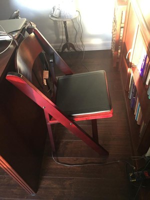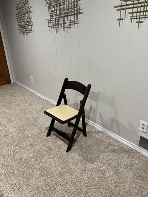 [This review was collected as part of a promotion.] The HERCULES Series Chocolate Wood Folding Chair with Vinyl Padded Seat is such a beautiful chair. It not only is great quality and very sturdy but it has a comfortable padded seat and held my 200+ husband. I would definitely recommend this chair!