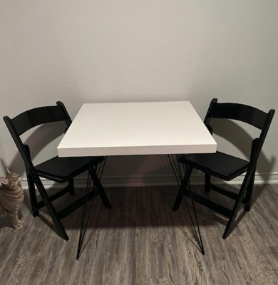 The seats aren’t very comfy, there’s hardly any padding. But they came fully built, they’re bigger than I expected, seem sturdy, and they fold up out of my way. A good chair to keep around for extra seating, not good enough to sit in at the dining table every night.