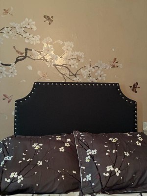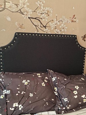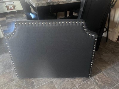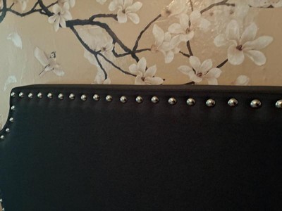 [This review was collected as part of a promotion.] Patiently waiting for my husband to come home to help me install this on my sons twin bed. The color is much prettier than I thought, more of a dark grey then a blackish grey that was pictured. Stud detail is amazing, and I LOVE the outlet and usb port. Great quality and has nail spots and 3M adhesive bonds on the back to connect to the wall. Super excited for this headboard!!