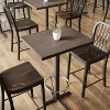 Elevate the look of your restaurant, brewery, or winery when you purchase this beautiful, solid wood, 24x30 commercial grade rectangular tabletop that seats up to 2 adults. The stunning dark brown finish lends upmarket style while the water-resistant properties, along with a scratch proof surface, brings reliable durability to your establishment. Measuring 1.5 inches thick and made of solid beechwood, with metal support bars, this industrial table top is more than capable of withstanding the demands of the hospitality industry and hold up to 300 lbs. static weight. Available in multiple shapes and sizes, these butcher block tabletops can be used together to add depth and dimension to your dining room. Attaching this tabletop to a compatible base (not included) is quick and easy and cleanup is a breeze requiring only a damp cloth and neutral detergent.