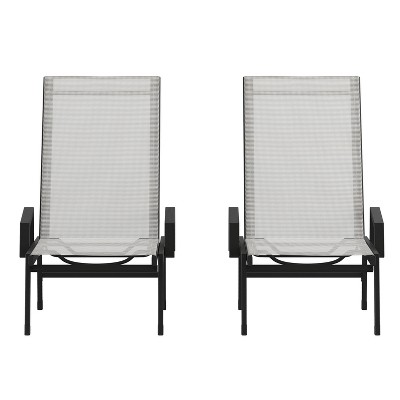 Flash Furniture Brazos Set of 2 Adjustable Chaise Lounge Chairs, Outdoor Five-Position Recliners, All Weather, Black/Black
