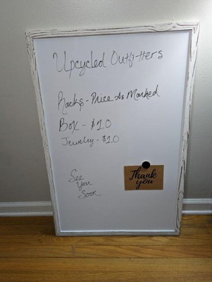 [This review was collected as part of a promotion.] Bristol & Influenster sent this magnetic whiteboard to me to share my experience. This is a great whiteboard. It comes with everything you need to hang it, the dry erase marker, and magnets. I use it for my pop-up shops. I also hang it in my kitchen. The frame is a white distressed so it can match many decors. All in all it is a perfect product.