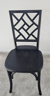 [This review was collected as part of a promotion.] I received this product for free to try. This chair looks great and feels like great quality. It is slightly smaller than our current dining room chairs so I don’t know that it would be a great fit for taller people. My husband is 6’2” and you can see in the picture that his bottom half is a little long for the chair. I do love the back design and think the chair will hold up well to regular usage.