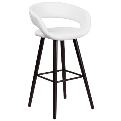 [This review was collected as part of a promotion.] I needed new stools for my home bar, as well as my photography studio for portraits, so when I had a look at the Brynn Series 29'' High Contemporary Cappuccino Wood Barstool in White Vinyl, I thought it might work for both. And I was right on both accounts, as it looks great, is well crafted, and very sturdy. The stool came well packaged and in perfect condition. Everything was wrapped well, and nothing was dented or dinged. The instructions were only so-so, though I didn’t have much of a problem as it is pretty intuitive and I’m fairly experienced. Still, the bolts and washers are very similar in size, so it isn’t super clear what you use for what. That said, it took me less than 30 minutes from removing it from the box, to sitting on it for the first time. The stool is very sturdy, especially considering its height, and it doesn’t wobble or feel unsteady or unbalanced. Everything joined up tightly, and the bracing is appropriate and snug. I feel like this stool will hold up well, though it uses (and includes) two different allen wrenches in its construction, and that just means I have twice the opportunity to misplace them. Still, when the time comes, I’m sure a quarter turn of the wrench will restore them to their original stability. The stool is quite attractive, the wood color deep and warm, and the white stark and modern. I love the lines of the stool, and the low back. It makes for a striking piece, especially when I use it in portraits. Too, it is very comfortable to sit in. The vinyl is supple and smooth, and the padding soft and easy on the spine. You won’t find yourself looking to move out of the chair, as it isn’t just for looks. This is a fun, good looking barstool that is built to last. I am very pleased, and look forward to what Brynn comes out with next. I do recommend!
