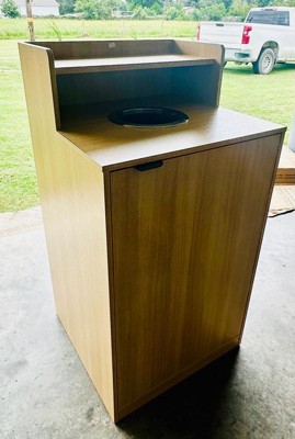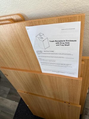 [This review was collected as part of a promotion.] This trash enclosure looks really nice but I don't really have a use for it. It is heavy and bulky for use at home but I feel it may come to use to keep pets and small children from getting into the trash. The assembly was quite easy but took an hour and a half. The material is very strong and sturdy and is real wood. This is kind of a silly product for me to keep but I will have to see if it works for me.