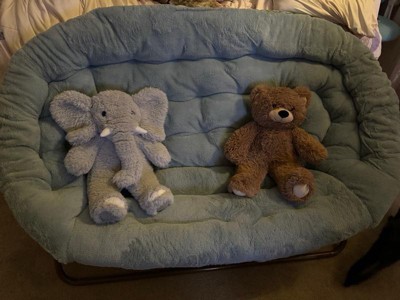 [This review was collected as part of a promotion.] This comfy chair is so huge. I love that you can fold it up for the convenience. The material on it is very soft and fur like. Goes perfect in a bedroom!