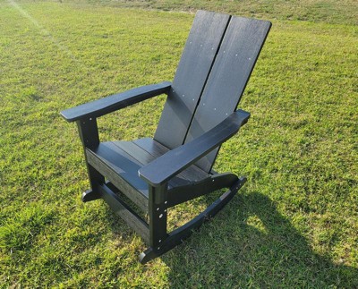 Flash Furniture Finn Modern All-Weather 2-Slat Poly Resin Wood Rocking Adirondack Chair with Rust Resistant Stainless Steel Hardware in Black