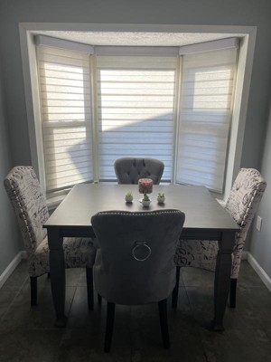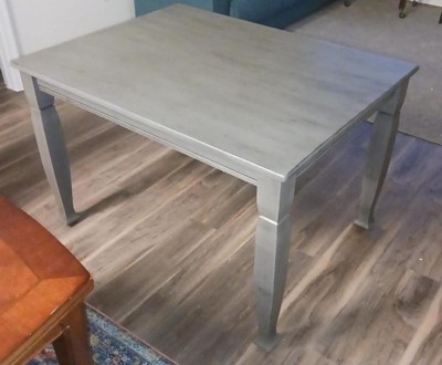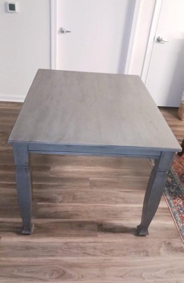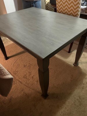 [This review was collected as part of a promotion.] I gave this gray solid wood dining table to my mom because I didn’t have the room and it is awesome. Very heavy and sturdy. Perfect size and color she couldn’t be happier. Definitely a lovely and useable table.