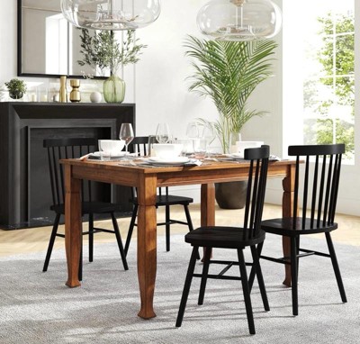 [This review was collected as part of a promotion.] This set is the perfect set for a smaller area. You can tell it’s really great quality. I love the contrast of the want wood with the dark chairs. It’s just perfect!