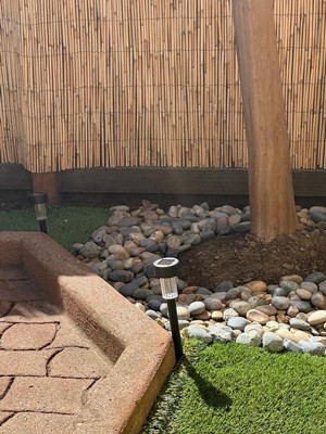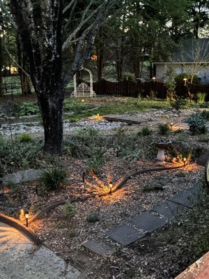 [This review was collected as part of a promotion.] Well, I wish I could give an actual review, or post a picture from night time, but they don’t work! They’re a super cute minimalist design, but unfortunately they do not work, despite being in the sunniest area of my yard and having plenty of time to collect solar energy. Wish I could give a real review on the purpose for them instead of just design.