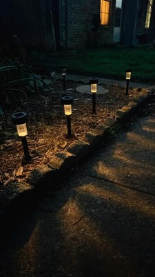 [This review was collected as part of a promotion.] Was excited to receive these solar lights as I’ve been wanting to freshen up my walkway for a while. Great set of 12. The color is very bright, and the lights were easy to put together. Seem a bit weak in materials, I thought they were advertised as stainless steel? Still super nice and super excited to set them up!