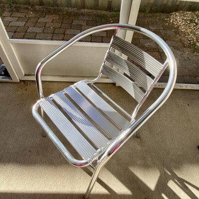 Awesome little aluminum stacking chair. Heavy duty and welded. I’ll order another. Won’t rust and lightweight. Comfortable. No assembly.