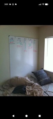 [This review was collected as part of a promotion.] We are in the midst of turning a backyard shed into a little classroom for my girls, and this whiteboard is going to work perfectly for it! It is HUGE but surprisingly lightweight, and I was able to carry the box from the front door down my basement stairs on my own. The whiteboard itself collapses in half, which makes it easy to store if needed. You can also technically use it on the floor by creating an angle with the two halves (as pictured). However, once the drywall is finished in our shed, this bad boy is getting hung up! Hardware is included, and it looks like quite a simple installation. For the size and quality (and included accessories), this is a great value. Highly recommend!